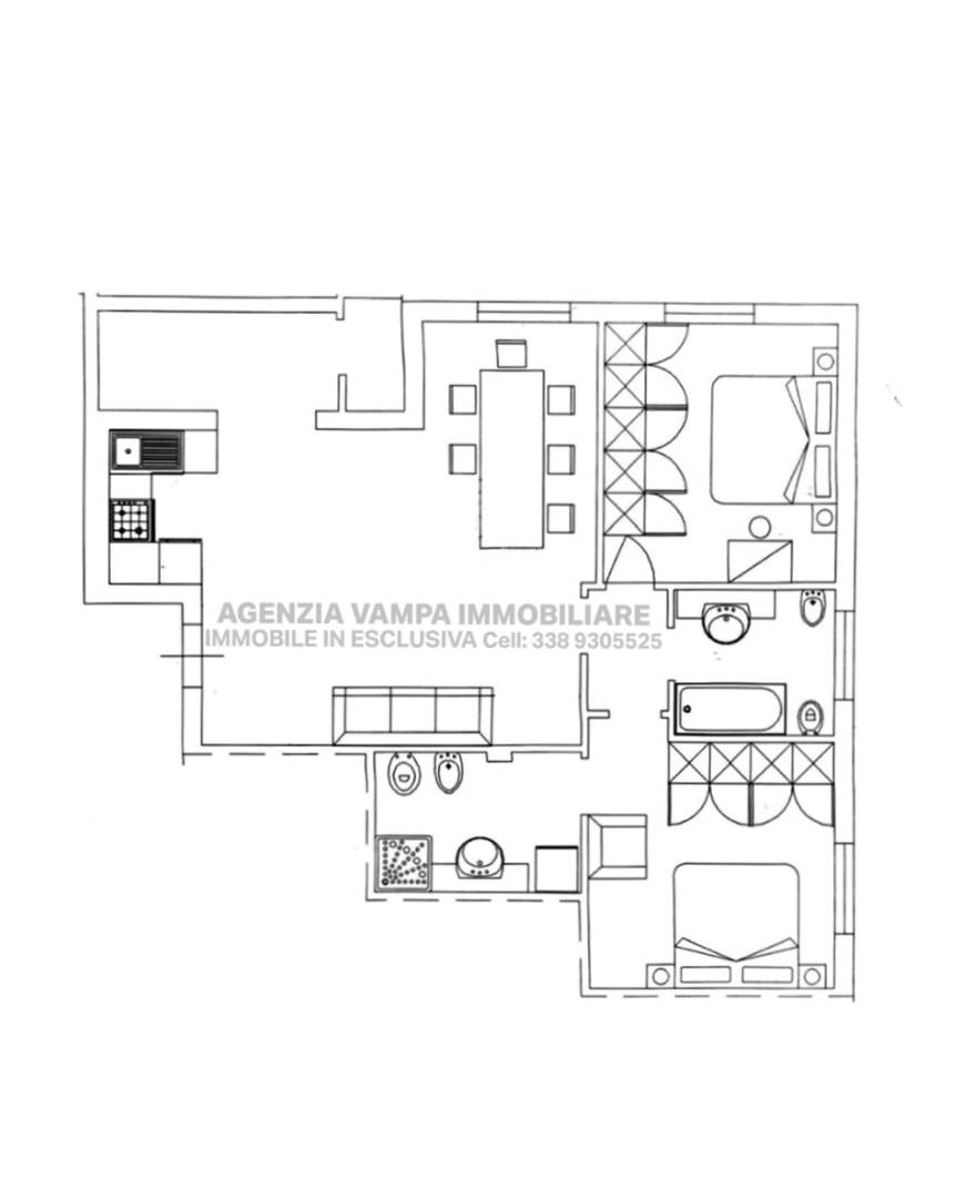 Appartamento di 70 mq circa ubicato al piano primo di una palazzina di poche unità e con ascensore, composto da un’ampia zona giorno con angolo cottura e balcone, due camere matrimoniali e due bagni. Inoltre, è presente un garage di proprietà di 25 mq circa.